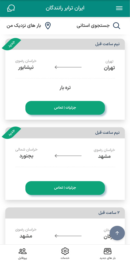 با وارد کردن شهر مبدا و مقصد رانندگان عزیز میتوانند به بار های موجود دسترسی پیدا کنند